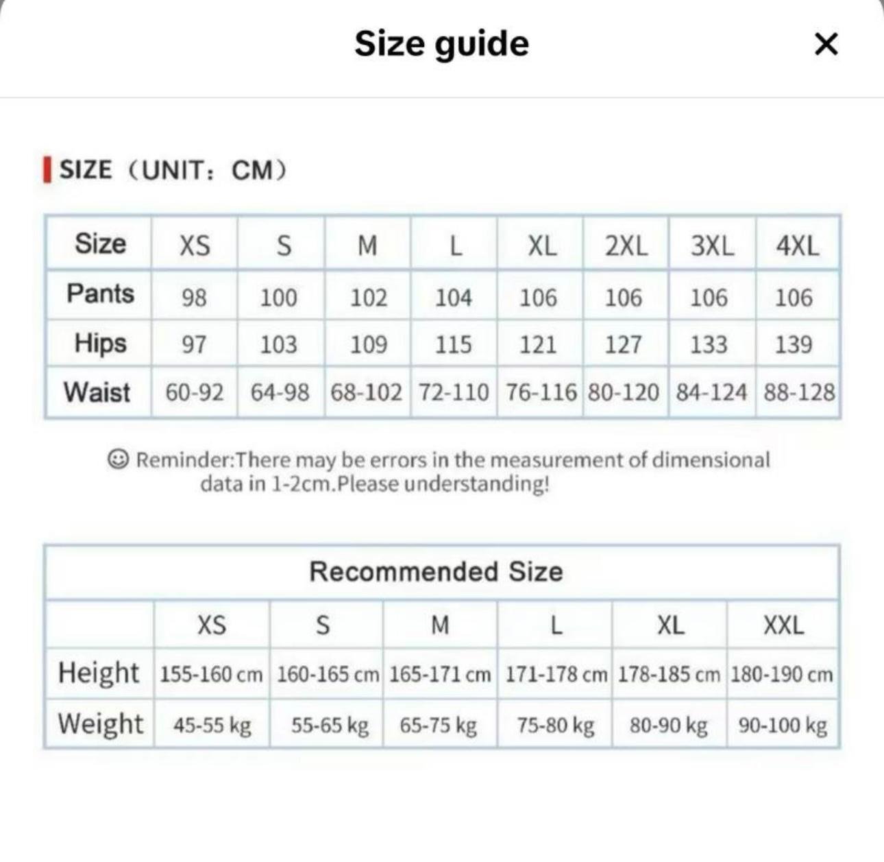 L, M, S, XL, XS, 2XL